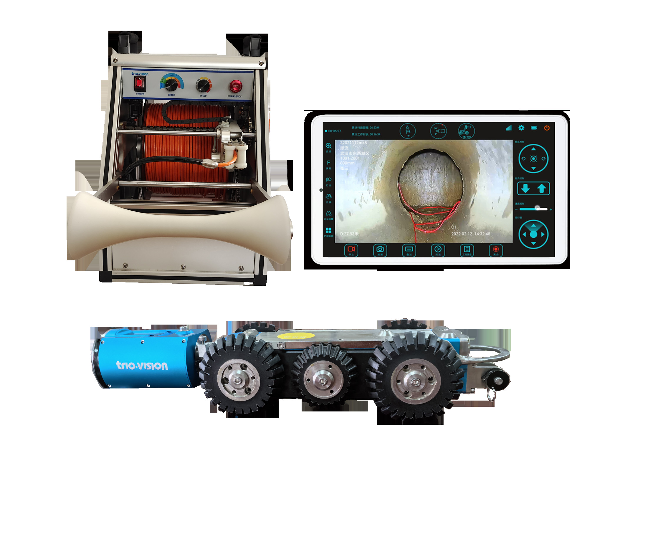 Cámara de inspección de alcantarillado CCTV con control remoto controla el movimiento del oruga en la tubería, la cámara de alta resolución en la parte delantera del oruga puede realizar una inspección y grabación completas de los defectos en las tuberías, y transmitir las imágenes a la unidad de control a través del cable sincrónicamente, para realizar el monitoreo remoto. La unidad de control utiliza el sistema operativo Windows, puede procesar y guardar los videos en el campo, y al mismo tiempo emitir juicios y emitir informes de inspección de tuberías, informes de inclinación y curva.